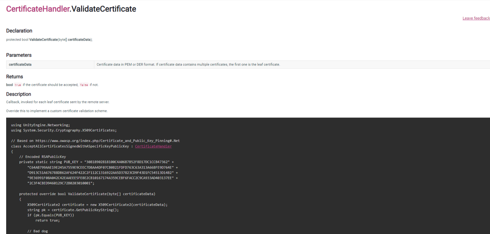 Unity Doc에 보면 CertificateHandler에 있는 ValidateCertifcate 함수를 override해주면 된다고 나와있다.