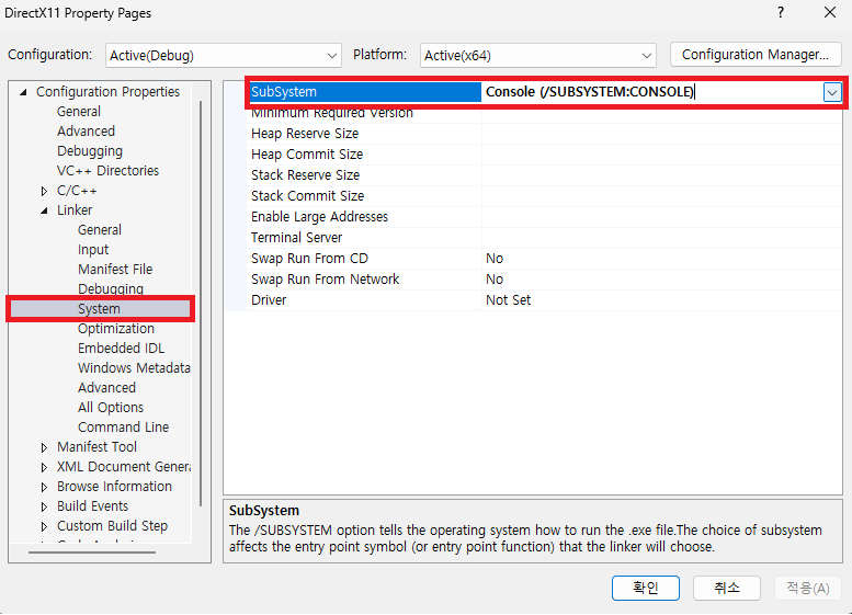 Visual Studio에서 빈 프로젝트를 만들고 Win32 콘솔 창을 띄우기 위해 다음과 같이 코드를 작성했다.