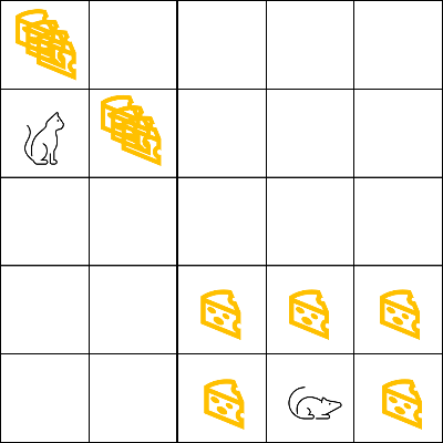 위 그림에서 쥐의 목표 고양이에게 잡히기 전에 최대한 많은 치즈를 먹는 것이다.