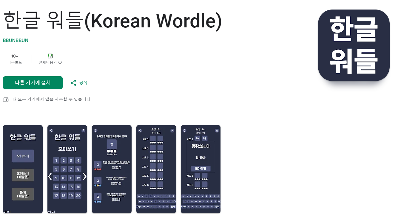 https://play.google.com/store/apps/details?id=com.CHS.Korean_Wordle