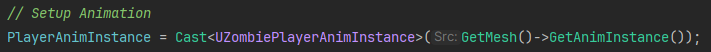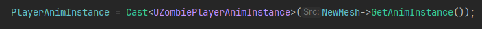 아래 사진 처럼 C++로 직접 USkeletalMeshComponent를 만들고 AnimInstance를 가져와 썼었다.