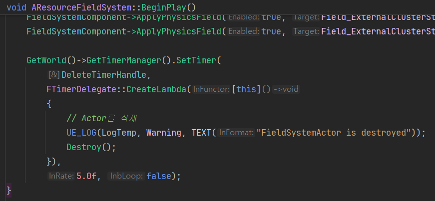 다른 액터에서는 잘 되었는데 BeginPlay에 넣은 Destroy()만 안됐다.