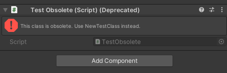 추가로 클래스는 인스펙터에서 Obsolete message로 적은 내용을 확인 가능하다. error를 적을 때와 안 적을 때가 다르게 표시된다.